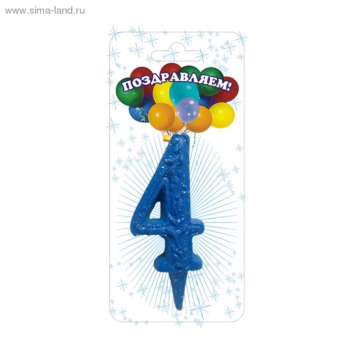 1249786 Свеча для торта "Цифра 4. Синий узор"