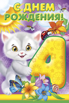 13.157.00 Открытка "4 годика.Белый котенок" Формат А5