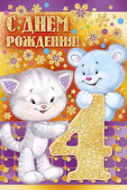 13.239.00 Открытка "4 годика.Котики с подарками" Формат А5