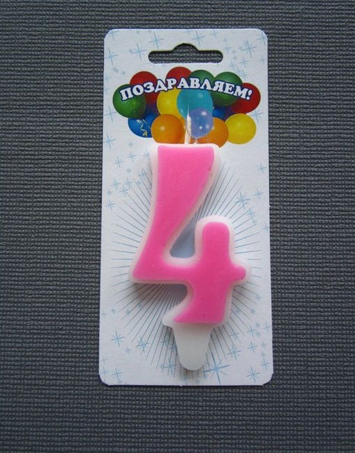 1388002 Свеча в торт "Цифра 4.Розовая классика"