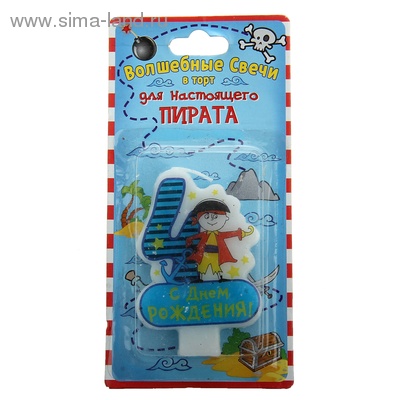 233039 Свеча для торта "Цифра 4.С Днем рождения" Пират