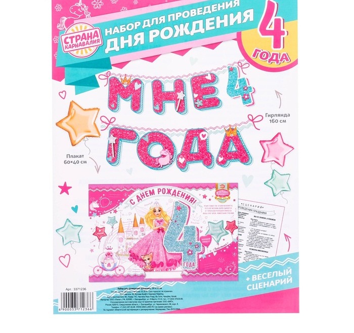 3371236 Набор для девочки"Мне 4 года" для проведения детского праздника