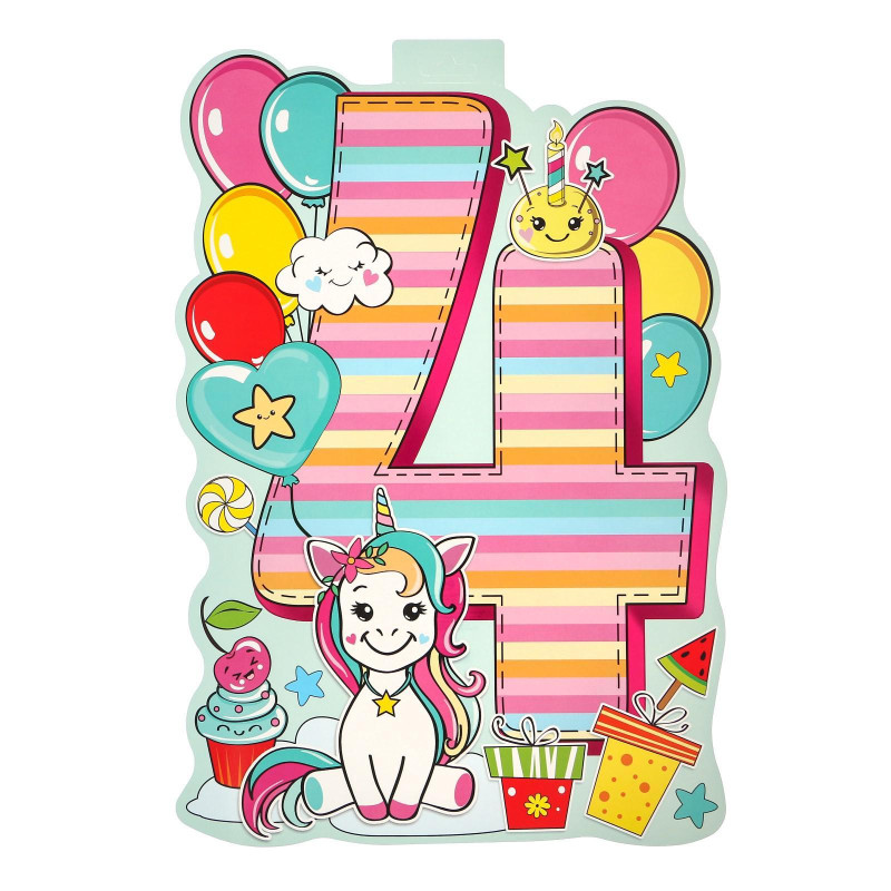 6907116 Плакат фигурный мягкий "4 года.Единорог" Размер 34 х 49,5 см.