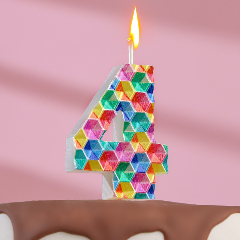 9608501 (1994) Свеча в торт "Цифра 4 Калейдоскоп" Высота 5,5 см.