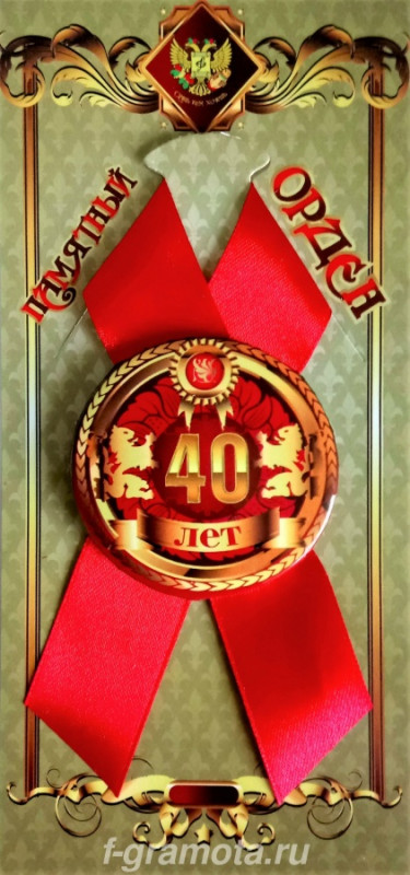 ФГ ORD000037 Орден "Юбиляр 40 лет" с креплением на булавку.Металл