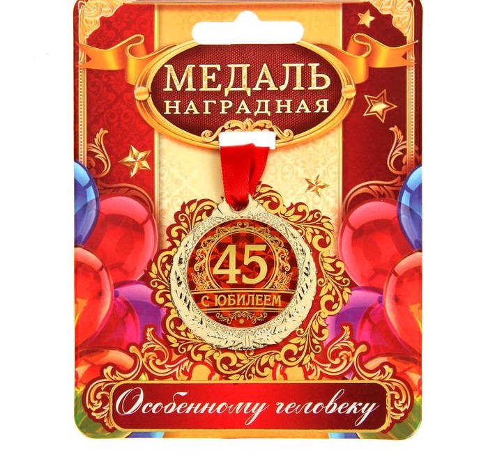 1500662 Медаль металл "С Юбилеем 45 лет!" на ленте.Диаметр 4 см.