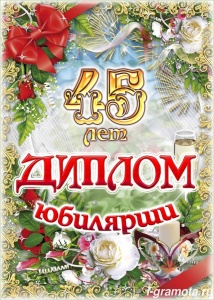 ФГ AF0000207 Диплом юбилярши "45 лет" Формат А5