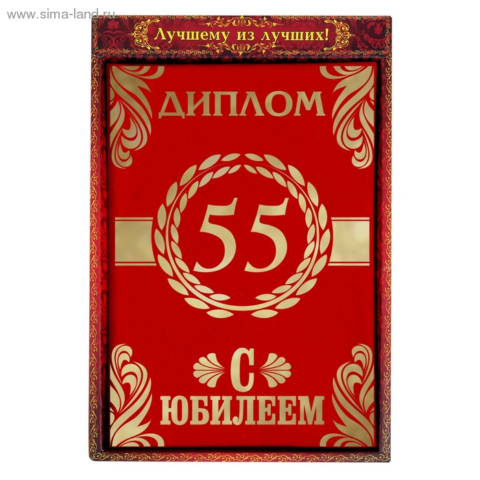 1046244 Диплом "С Юбилеем 55!" бархат в подарочной упаковке