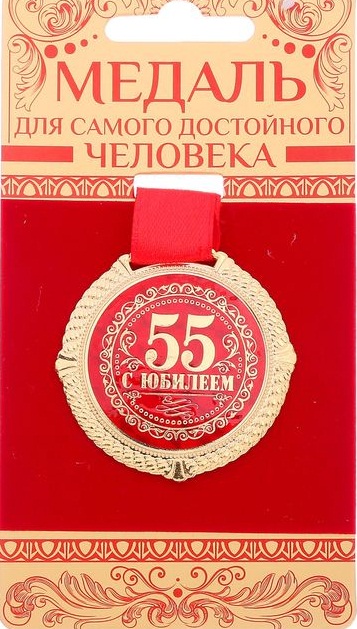 1921034 Медаль универс."С Юбилеем 55 лет!" на ленте.Диаметр 5 см.Металл