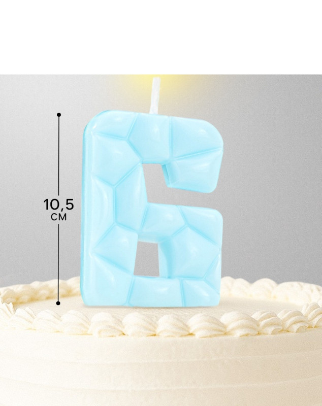 10603326 Свеча в торт "Цифра 6. Голубая" на шпажке. Высота 5 см.
