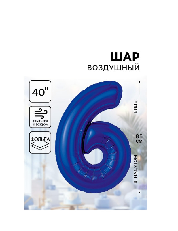 10930086 (АГ 941278) Темно синяя Slim фольгированная "Цифра 6" Высота 85 см.