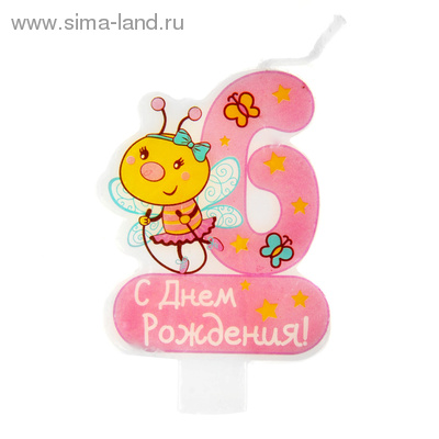 233031 Свеча для торта "Цифра 6.С Днем рождения" Пчелка