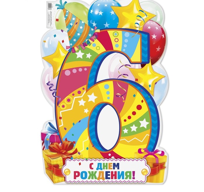 2804188 Плакат мягкий "6 лет! С Днем рождения!" Размер 40 * 60 см.