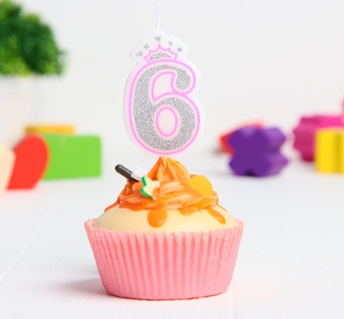 3462540 Свеча в торт "Цифра 6.Серебро с короной" на палочке.Высота 5,5 см.