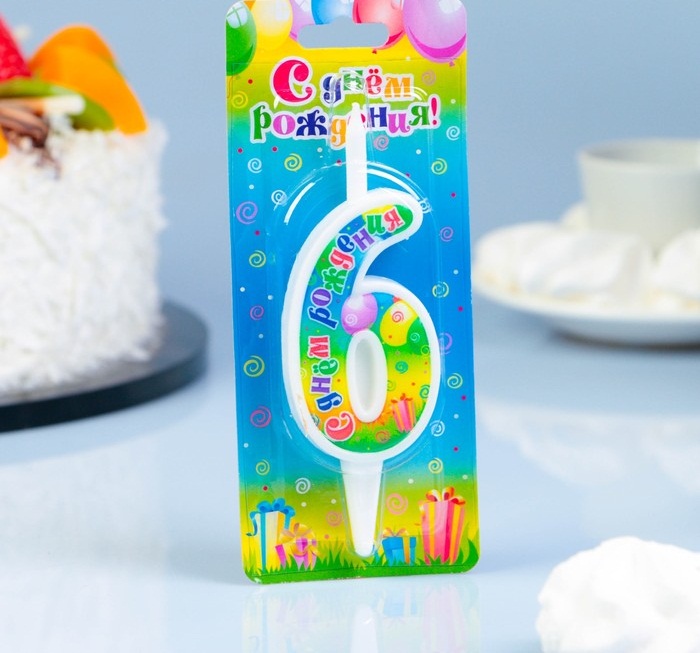 4237785 (5876) Свеча в торт "Цифра 6.С Днем рождения!"