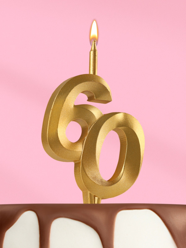 10873643 (3764) Двойная свеча в торт "Цифра 60 лет" Цвет золотистый Высота 12 см.