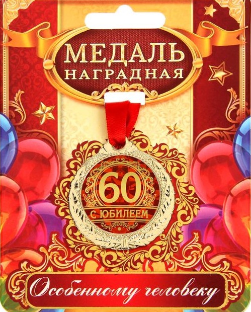1500659 Медаль универс."С Юбилеем 60 лет!" на ленте.Диаметр 4 см.Металл