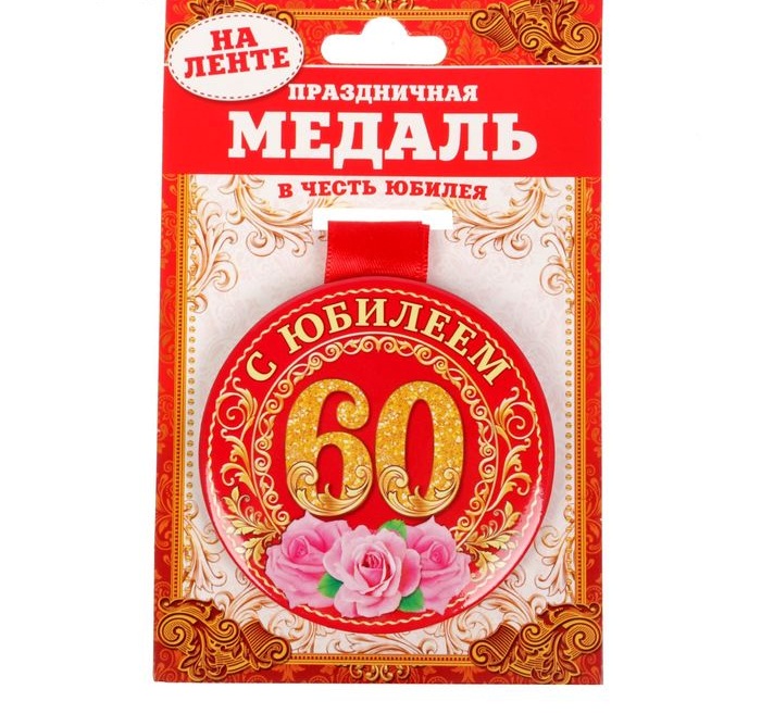 1902528 Медаль женская "С Юбилеем 60 лет!" на ленте.Диаметр 7,5 см.Металл