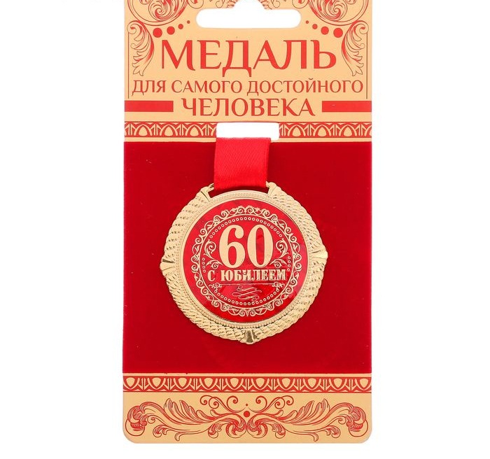 1921033 Медаль универс."С Юбилеем 60 лет!" на ленте.Диаметр 5 см.Металл
