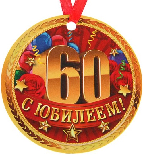 2314896 Медаль магнит "С Юбилеем 60 лет!" на ленте. Диаметр 7 см.