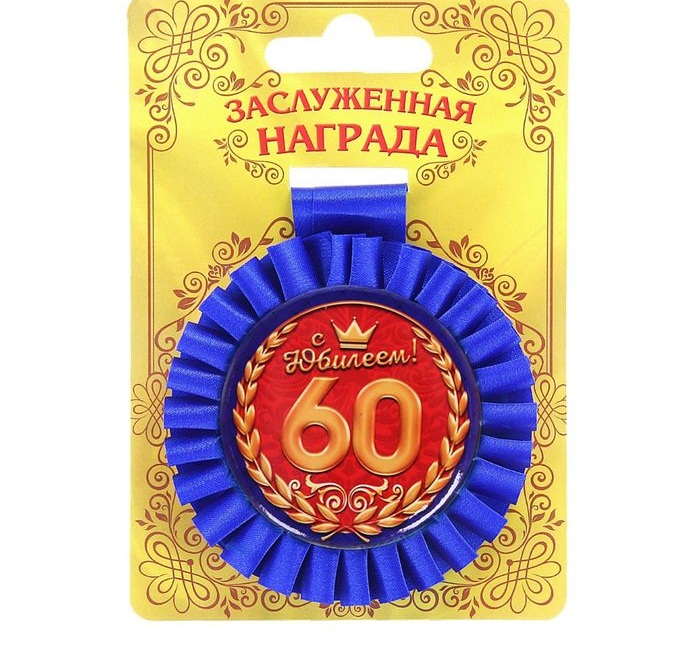 2367874 Медаль розетка синяя "С Юбилеем 60 лет!" на ленте.Диаметр 8 см.Металл
