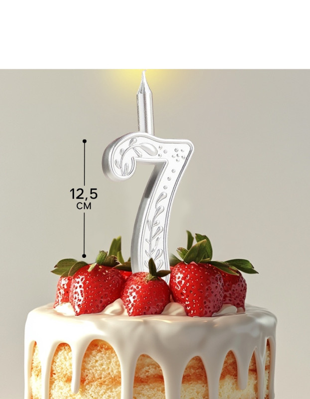 10603305 Свеча в торт "Цифра 7. Серебряный узор" Высота 9 см.
