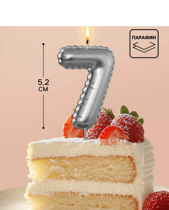 10981661 (4397) Свеча в торт "Цифра 7 Серебряная воздушная" Высота 5 см.