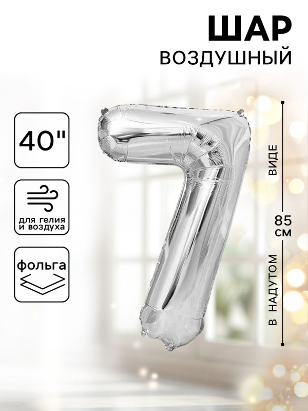 1386220 Серебряная фольгированная "Цифра 7" Высота 85 см.
