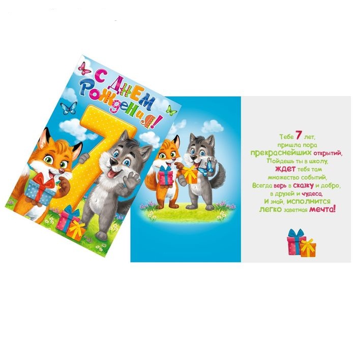 1682658 Открытка "7 лет.Лисенок и волченок" Формат А5