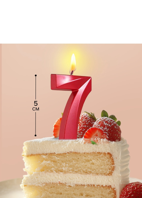 5572761 Свеча в торт "Цифра 7 Красный металлик" на шпажке Высота 5 см.