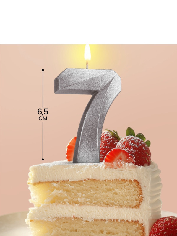 5928501 Свеча в торт "Цифра 7 Серебристый металлик" Высота 6,5 см.