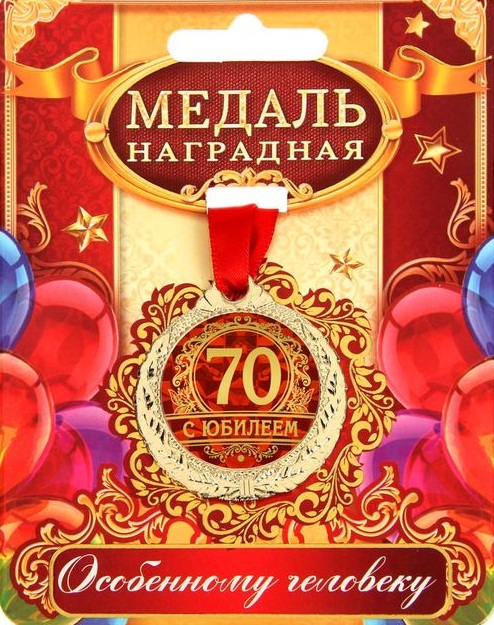 1500663 Медаль универс."С Юбилеем 70 лет!" на ленте.Диаметр 4 см.Металл
