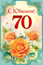 32.132.00 Открытка "С Юбилеем 70 лет! Оранжевая роза" Цветные блестки в лаке