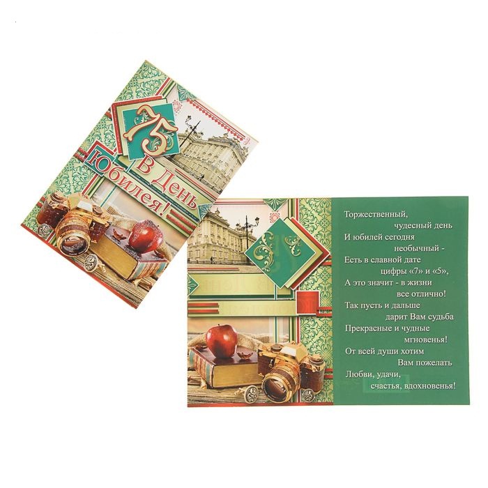 1350996 Открытка "В День Юбилея 75 лет! Архитектура,фотоаппарат" Формат А5