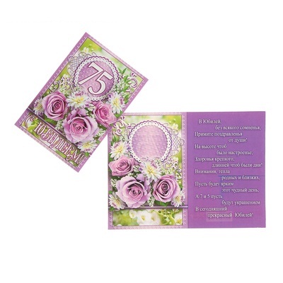 1350997 Открытка "С Юбилеем 75 лет! Фиолетовые цветы" Перламутр Формат А5