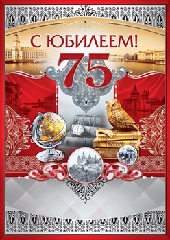 58.377 Открытка мужская "С Юбилеем 75 лет! " Формат А4 без конверта