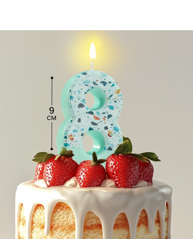10603259 Свеча в торт "Цифра 8 Ментоловая мозаика" Высота 8 см.