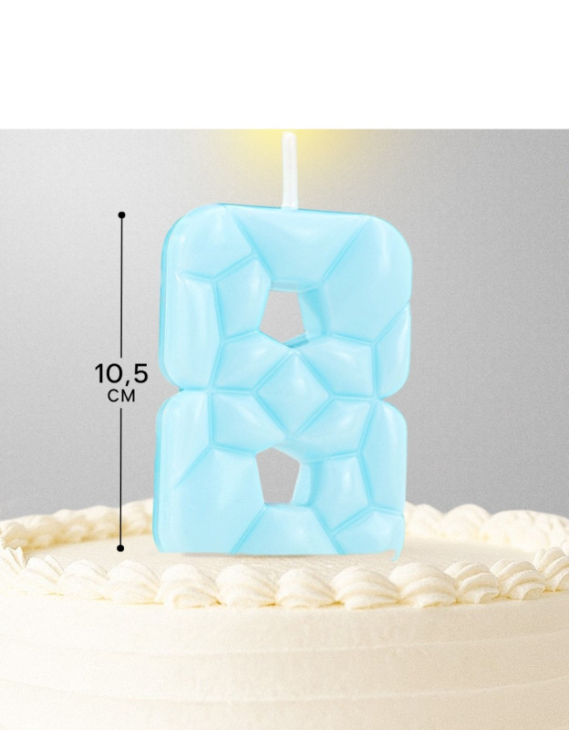 10603328 Свеча в торт "Цифра 8. Голубая" на шпажке. Высота 5 см.