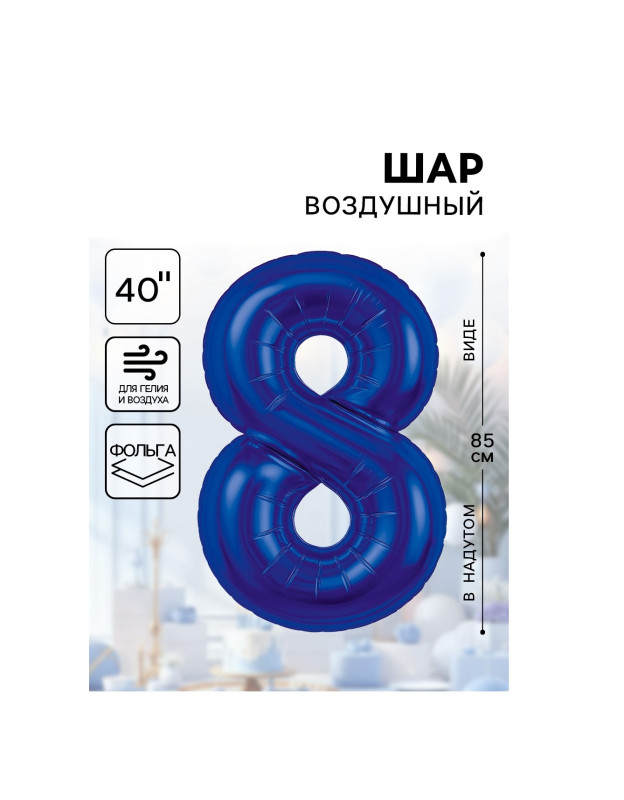 10930088 (АГ 941292) Темно синяя Slim фольгированная "Цифра 8" Высота 85 см.