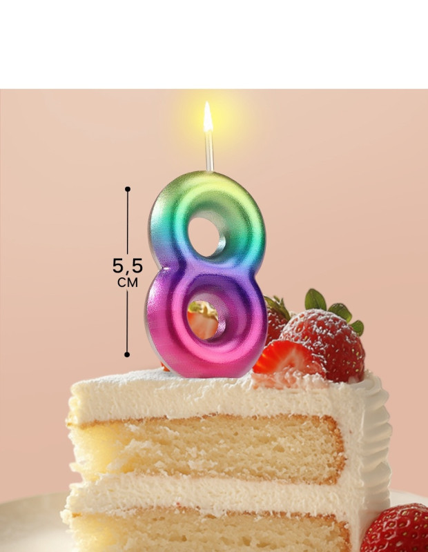 120320 Свеча в торт "Цифра 8 Градиент" Высота 5 см.
