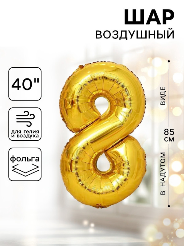 1386211 Золотая фольгированная "Цифра 8" Высота 85 см.