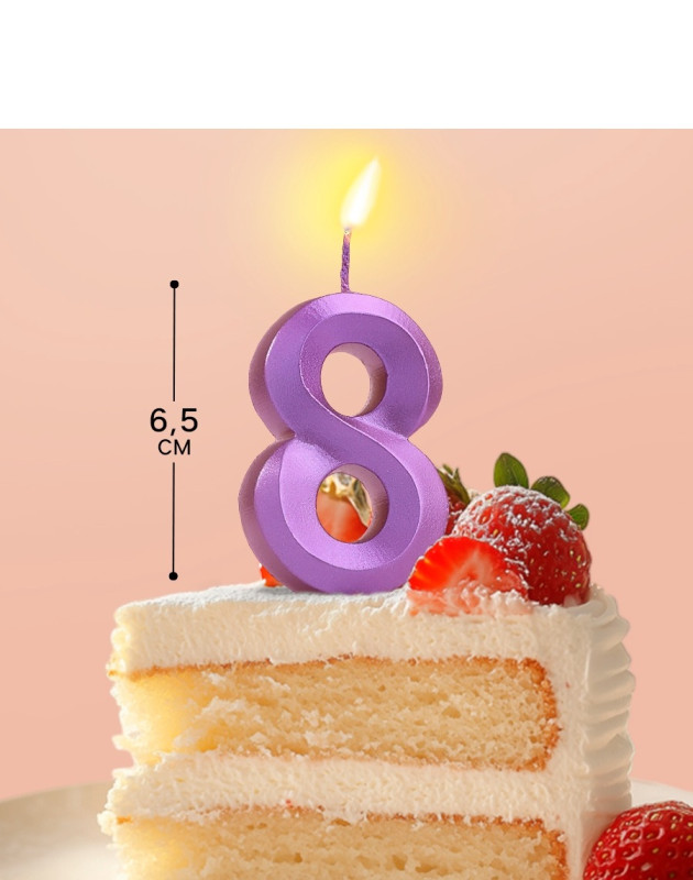 6536357 Свеча в торт "Цифра 8 Фиолетовый металлик" Высота 6,5 см.