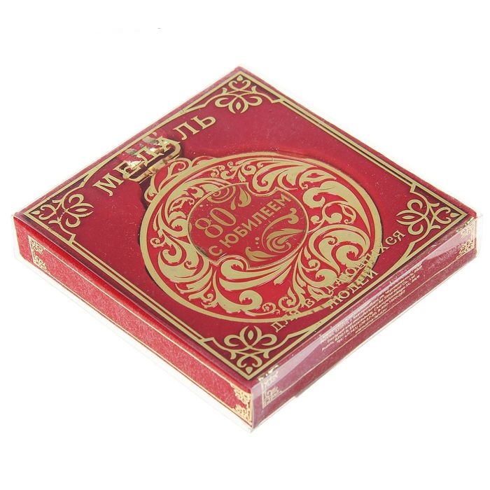 960547 Медаль металл "С Юбилеем 80 лет!" на ленте в подар.коробке