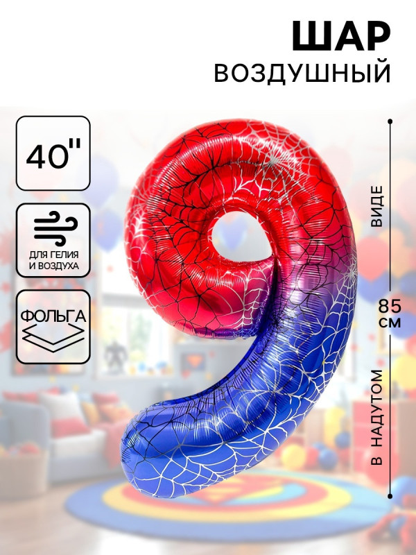 10919698 (ДБ 26979) Фольгированная "Цифра 9.Паутина" Высота 102 см.