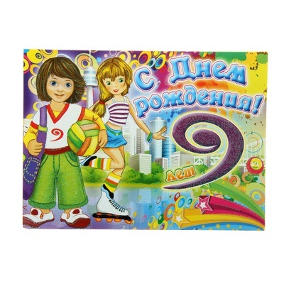 1162360 Открытка объемная "9 лет.Девочки спортсменки" Формат А4