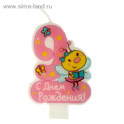 233034 Свеча для торта "Цифра 9.С Днем рождения" Пчелка