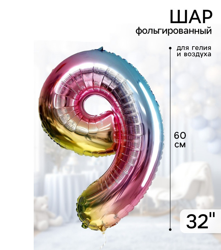 5205372 Градиент фольгированная "Цифра 9" Высота 60 см.