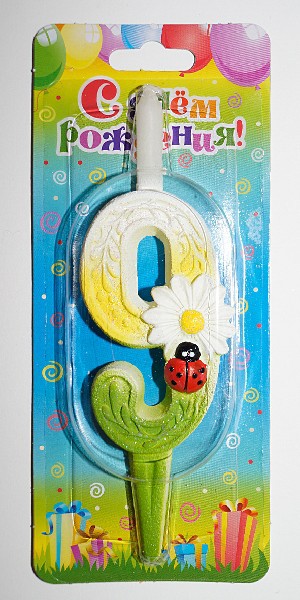 1462564 (БР 3070) Свеча для торта "Цифра 9. Ромашка с божьей коровкой"