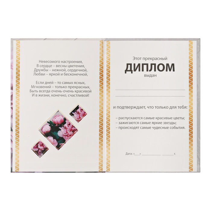3880971 Диплом "Для тебя!" Формат А6.Твердый переплет