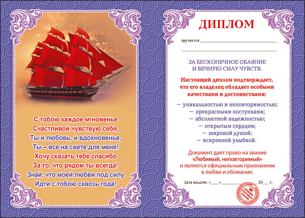51.52.369 Диплом любимого и неповторимого в твердом переплете. Формат А6
